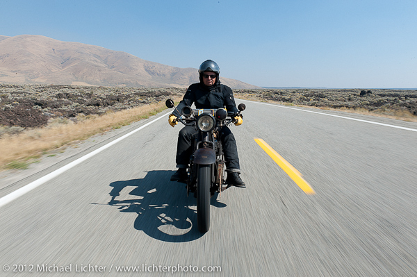 | Andreas Kaindl from Germany and his Excelsior-Henderson, in the Idaho desert |