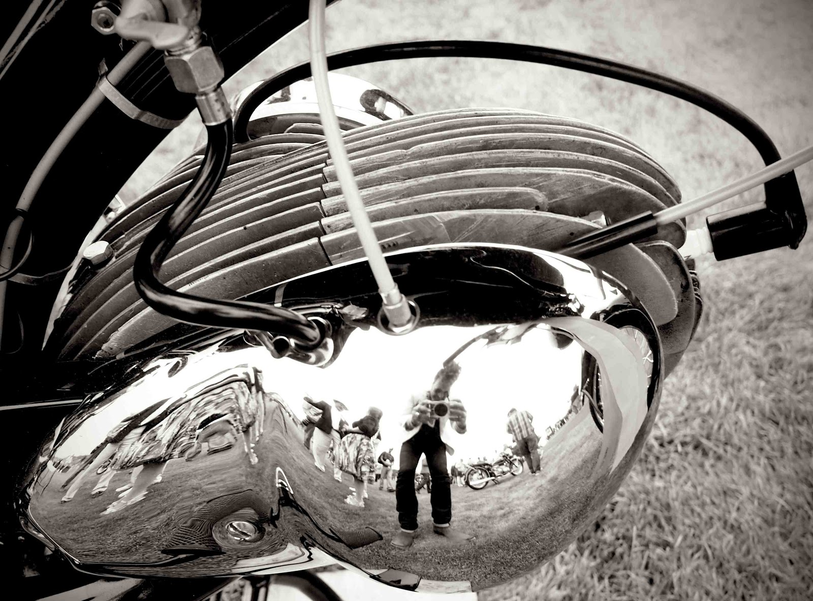 | At the MidAmerica tent; the Triumph X-1 streamliner, with twin T110 engines, in original patina |